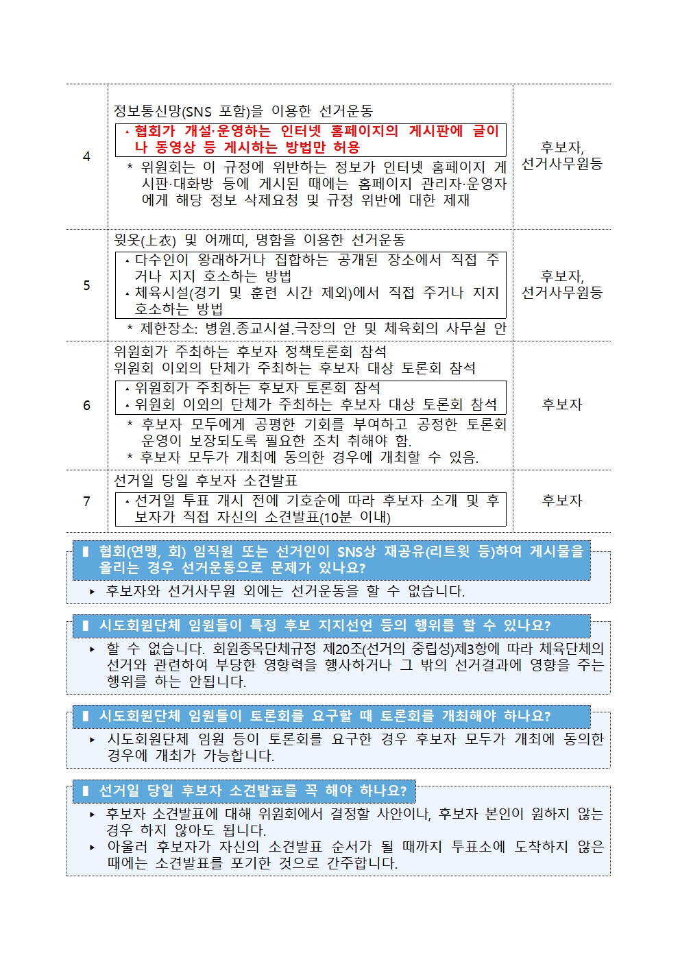 목록 공지 회원종목단체 회장선거 가이드라인 (선거운동 발췌) 최고관리자 2025-11-06 15:34 (수정: 2025-11-08 02:12) 조회 16 이전글 [필독공지] 후보자(선거사무원 포함) 및 선거인 필독 공지 다음글 참고용 - 제42대 대한체육회장 선거 Q & A (선거운동 파트)