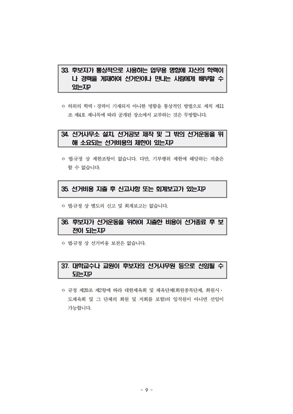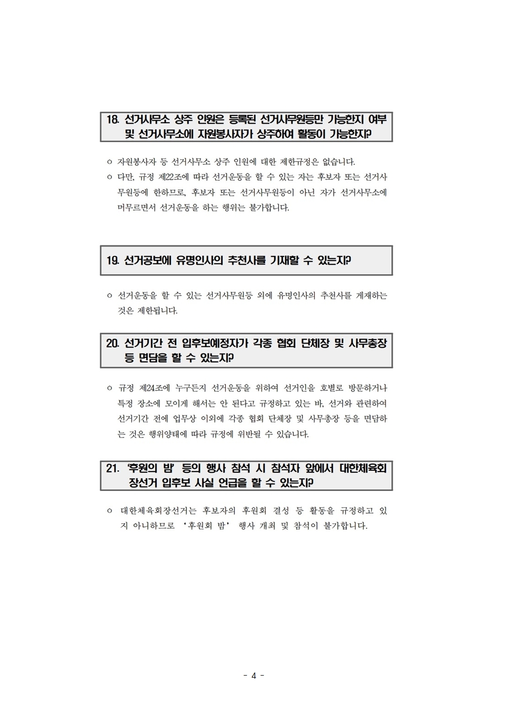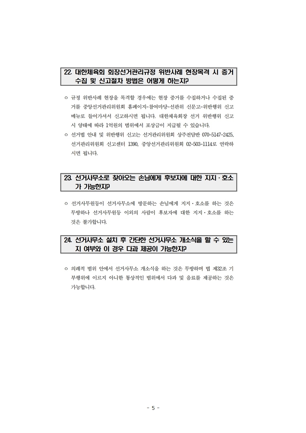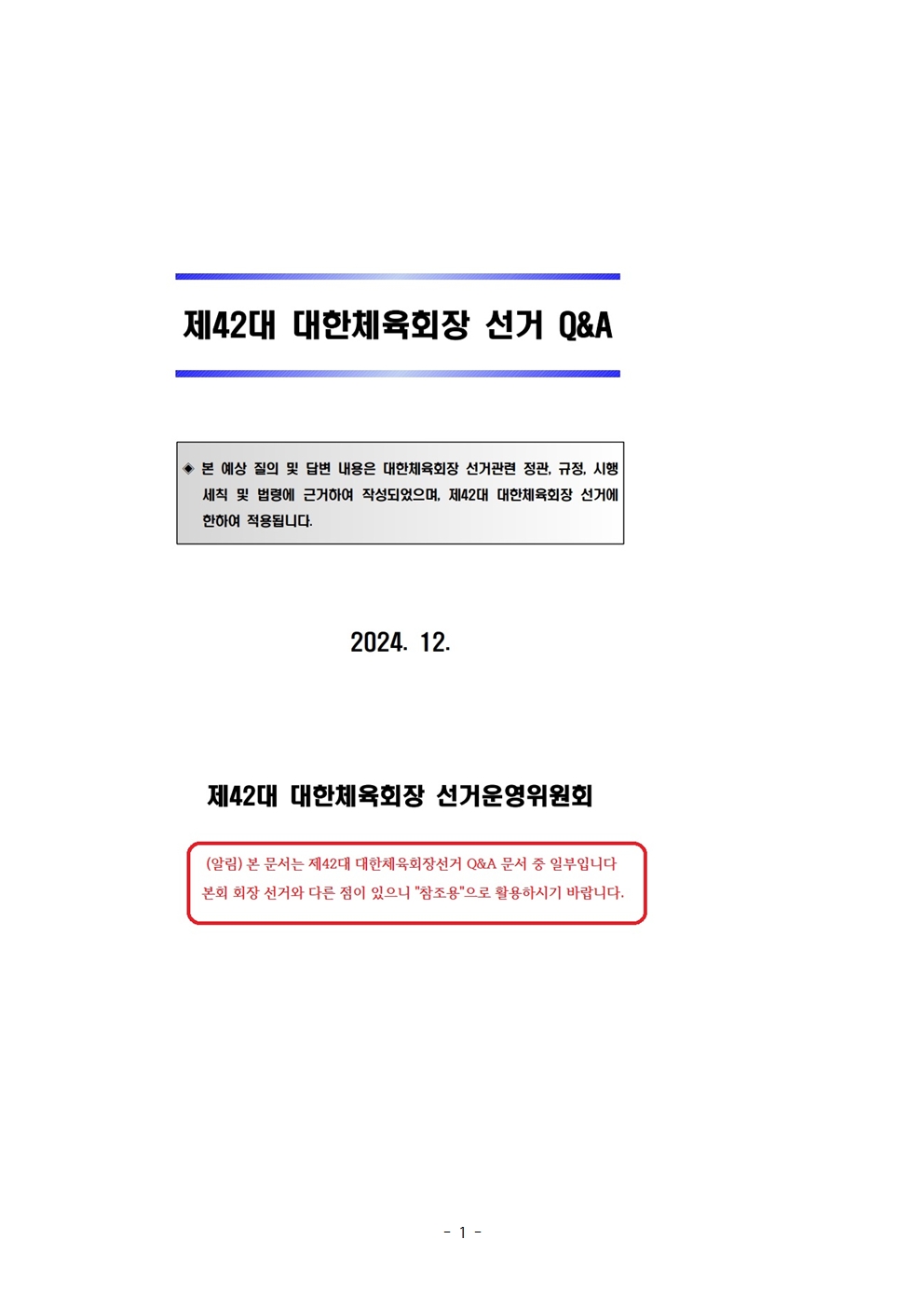 목록 공지 참고용 - 제42대 대한체육회장 선거 Q & A (선거운동 파트) 최고관리자 2025-11-06 15:37 (수정: 2025-11-08 02:09) 조회 17 이전글 회원종목단체 회장선거 가이드라인 (선거운동 발췌) 다음글 대한주짓수회 회장선거관리규정
