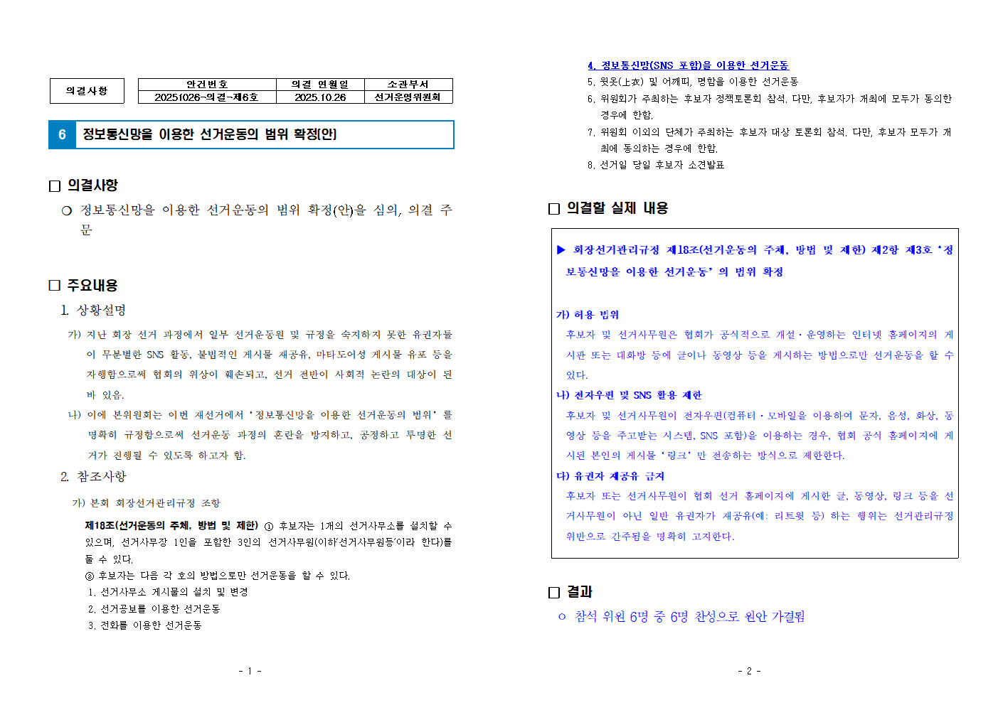 목록 공지 대한주짓수회 선거운영위원회 의결사안(SNS관련) 최고관리자 2025-11-06 15:52 (수정: 2025-11-08 02:08) 조회 16 이전글 대한주짓수회 회장선거관리규정 다음글 [필독공지] 유권자(선거인) 불법 선거운동 관련 공지
